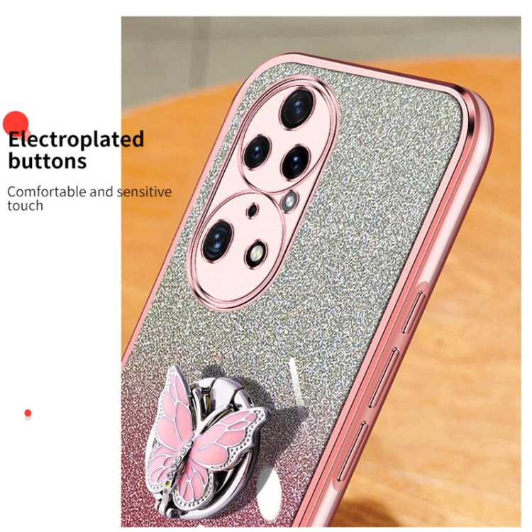 Funda TPU con Soporte Mariposa Purpurina Degradada para Huawei P50 Pro (Azul Sierra)