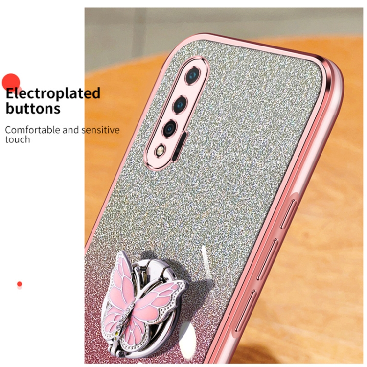 Funda TPU con Soporte Mariposa Purpurina Degradada para Huawei Nova 6 (Plateada)