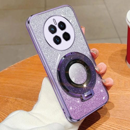 - 1x Funda TPU con Soporte Redondo y Purpurina Degradada para Huawei Mate 50/Mate 50E (Morada)