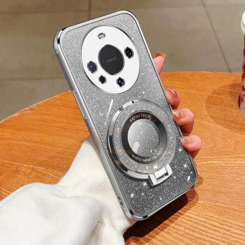 Funda TPU con Soporte Redondo y Purpurina Degradada para Huawei Mate 60 (Plateada)