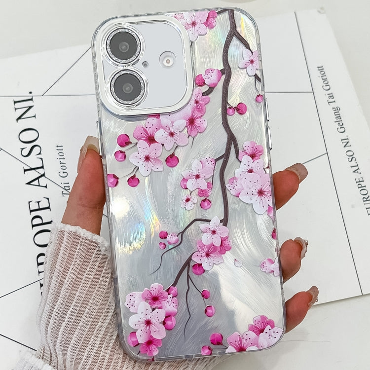 Funda TPU para iPhone 16 Flor de Ciruelo Fl6 Textura Flores y Plantas Galvanizadas