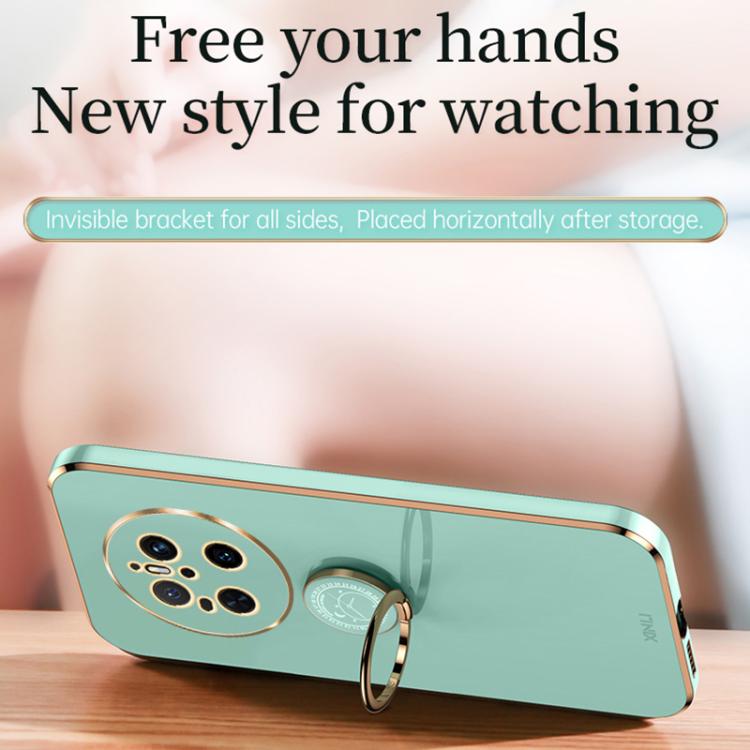Funda TPU Galvanizada 6D con Borde Recto y Soporte Anillo para Huawei Mate 70 Xinli (Azul Celestial)
