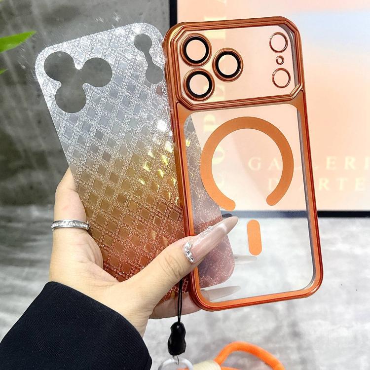 Funda de TPU MagSafe con ventana grande, diseño de rombos degradados, mate, galvanizada, con correa de mano para iPhone 17 Pro Max (plateada)