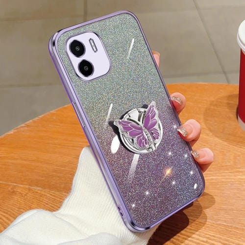 Funda de TPU para Teléfono Redmi A1 con Diseño de Mariposa con Purpurina y Degradado (Morado)