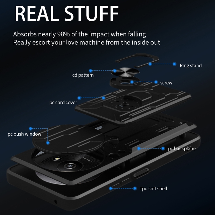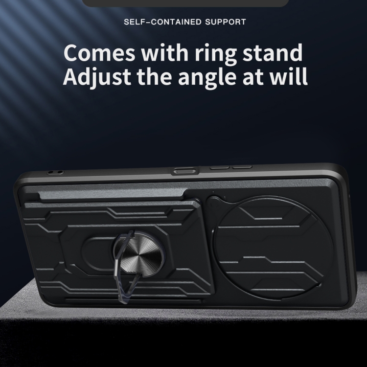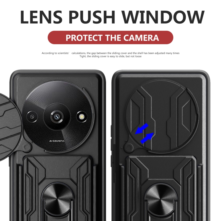 Funda de TPU+PC con Ranura para Tarjetas y Cierre Deslizante para Xiaomi Redmi A3 (Blanca)