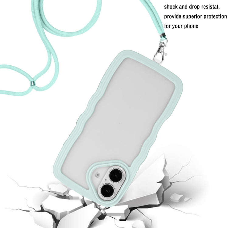 Funda TPU para iPhone 16 Plus con Cordón y Diseño Ondas (Verde)
