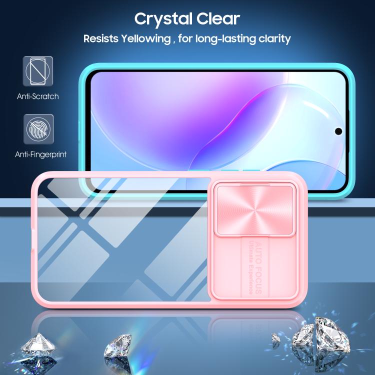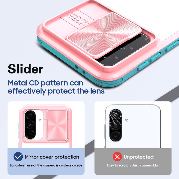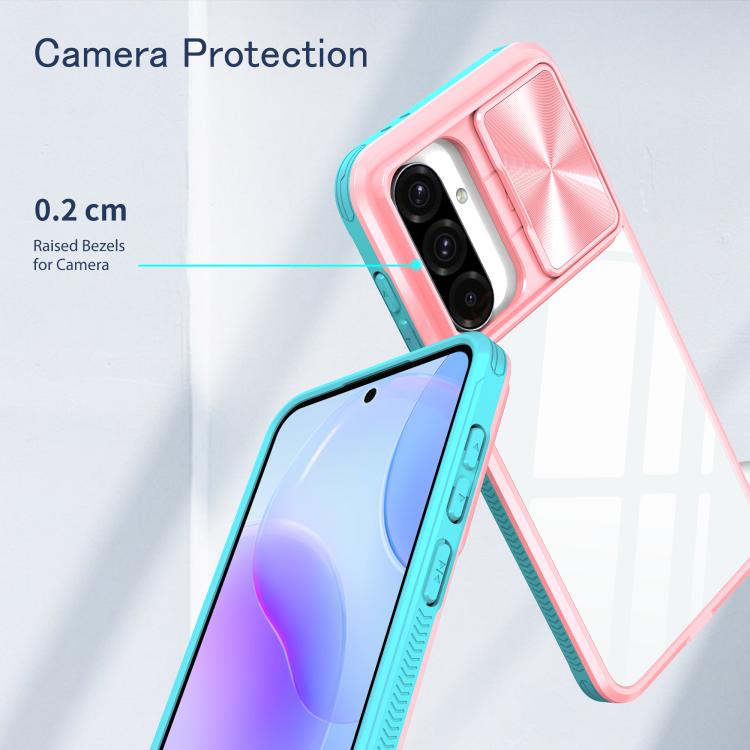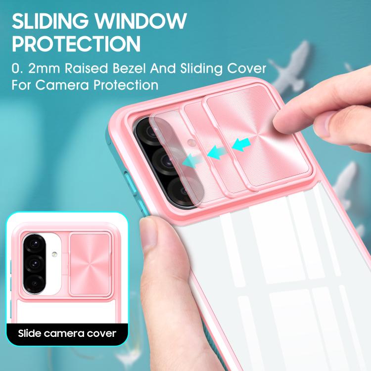 Funda deslizante de acrílico transparente + PC + TPU para Samsung Galaxy A56 5G / A36 5G (rosa y cian)