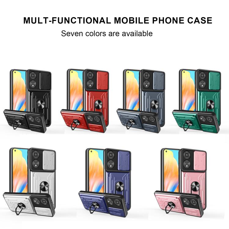 Funda Deslizante de TPU y PC con Ranura para Tarjetas para Oppo A78 4G (Negro)