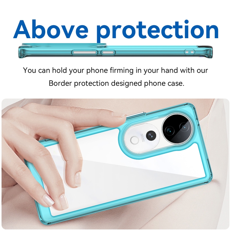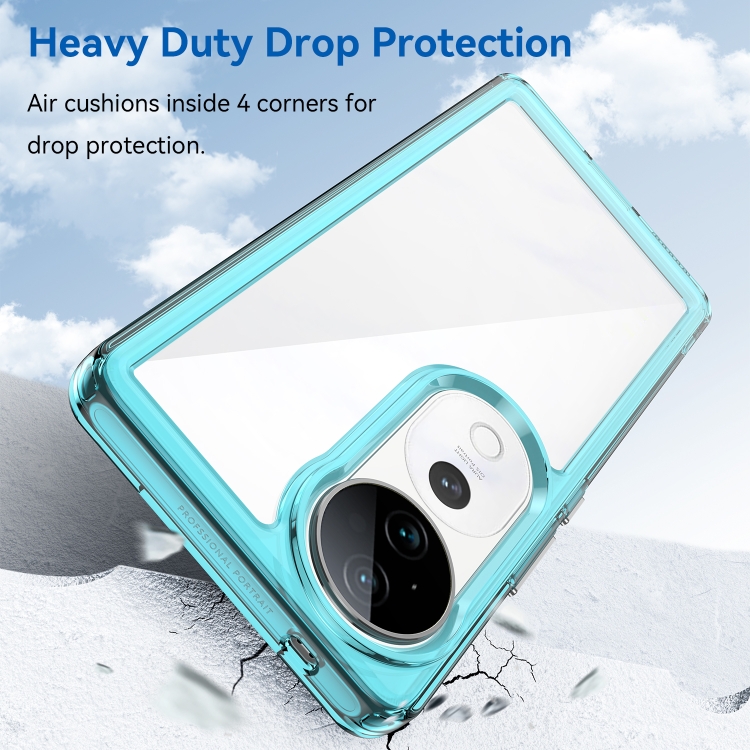 Funda Híbrida de TPU Acrílica para Teléfono Vivo V40 5G de la Serie Colorida (Azul Transparente)