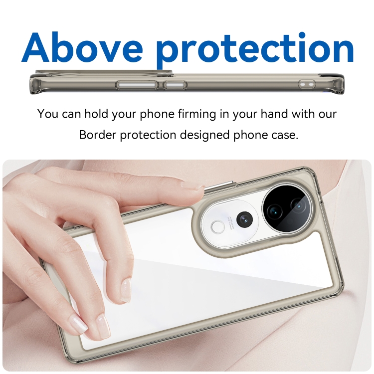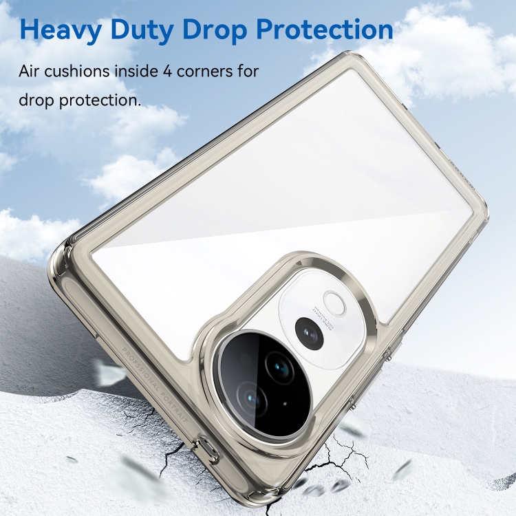 Funda Híbrida de TPU Acrílica para Teléfono Vivo V40 5G de la Serie Colorida (Gris Transparente)