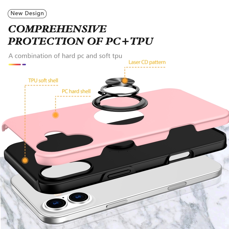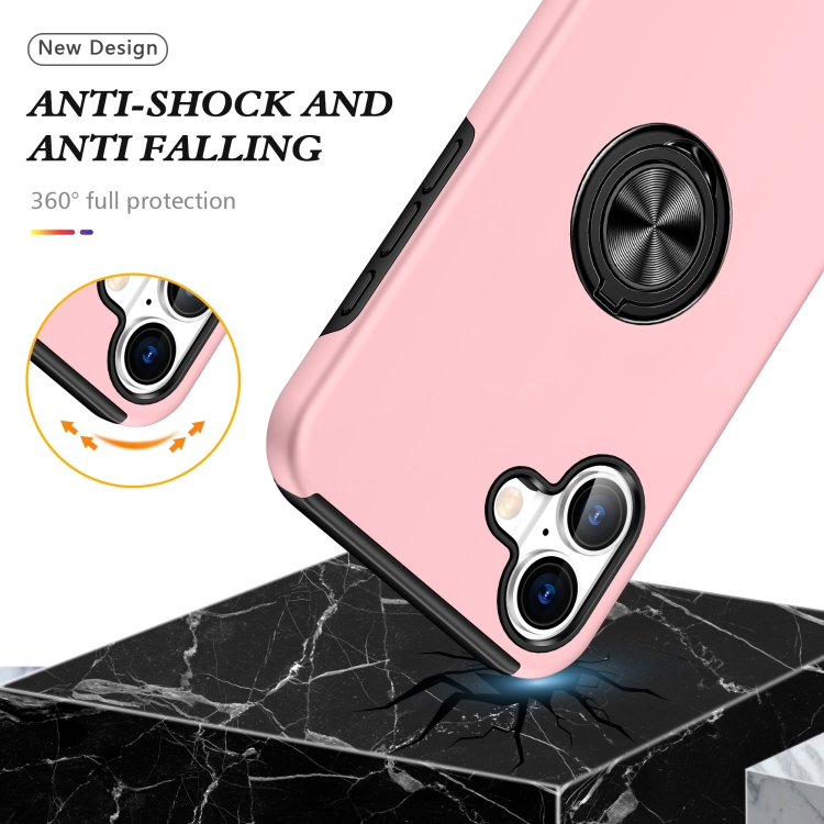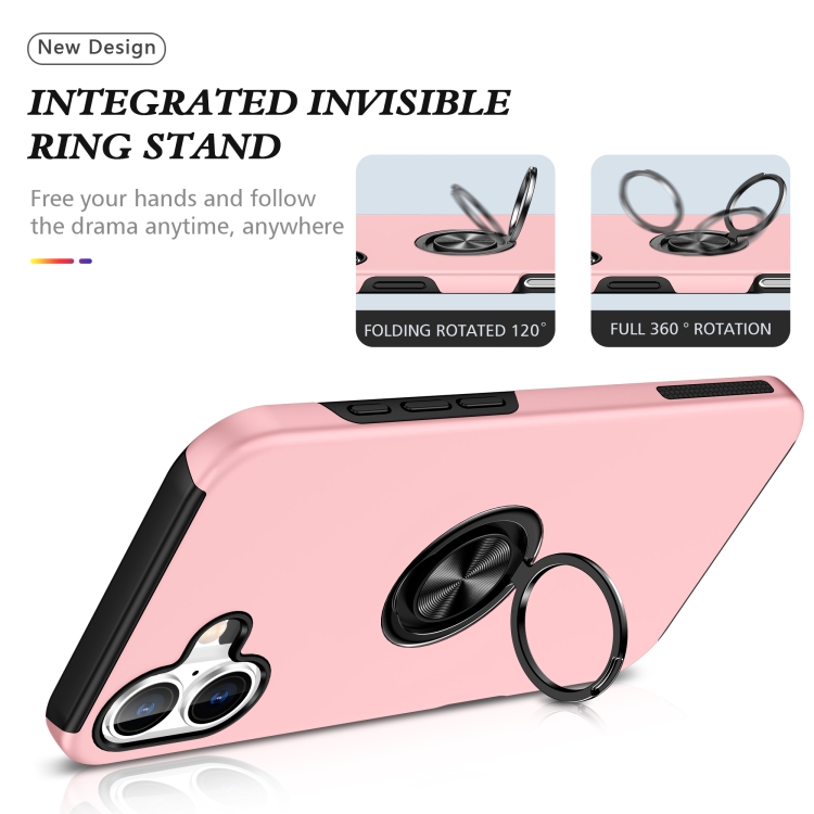 Funda híbrida TPU con anillo magnético para iPhone 16 Plus (Oro Rosa)