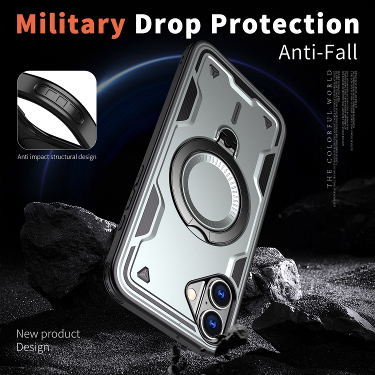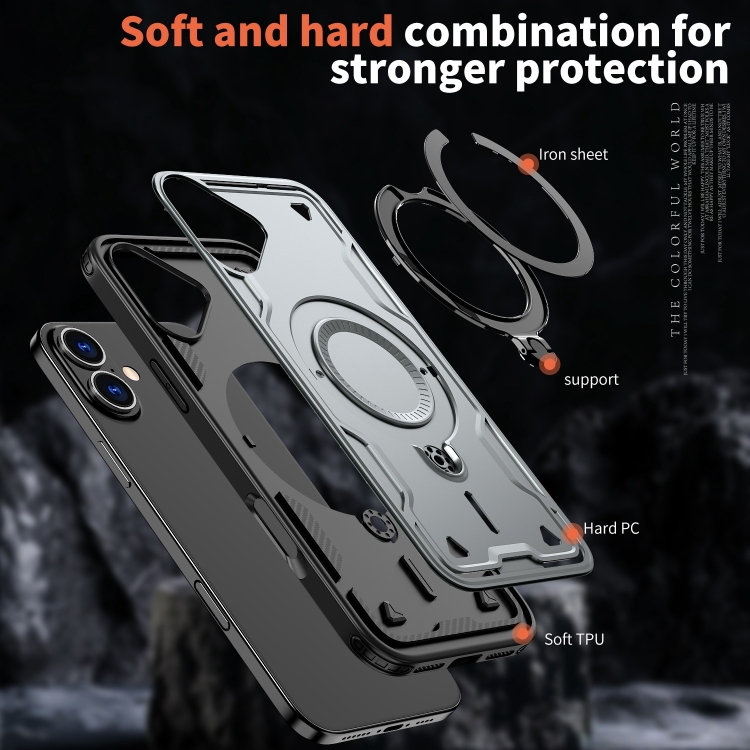 Funda híbrida TPU con soporte Magsafe para iPhone 16 Plus (Gris)