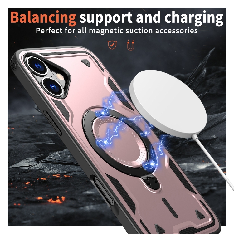 Funda híbrida TPU con soporte Magsafe para iPhone 16 Plus (Oro Rosa)