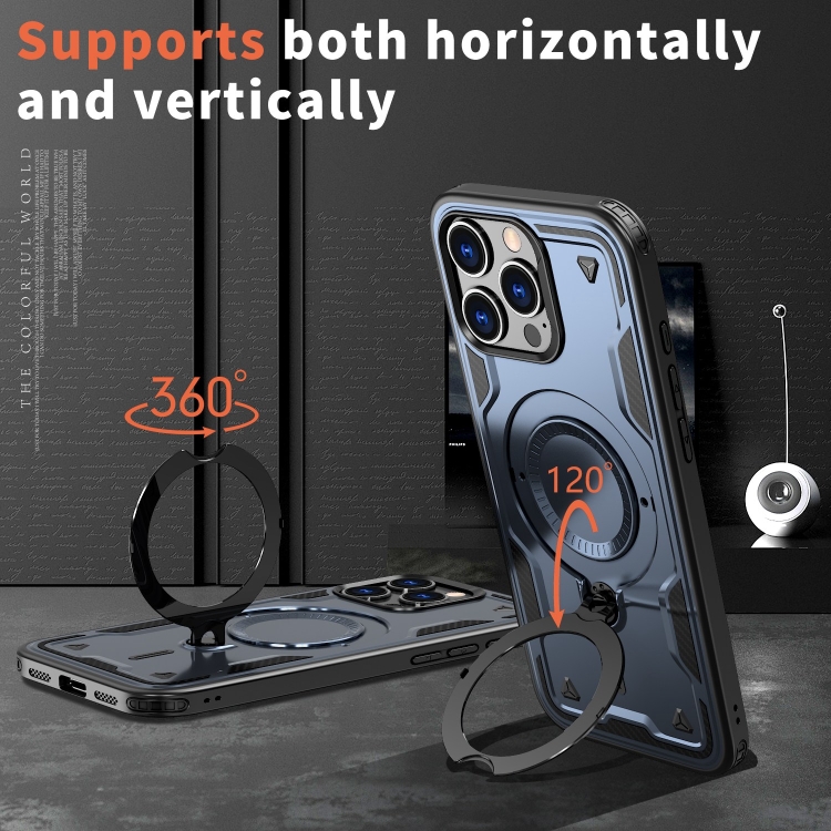 Funda híbrida TPU con soporte Magsafe para iPhone 16 Pro Max (Azul)