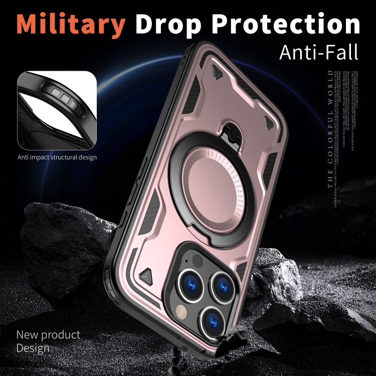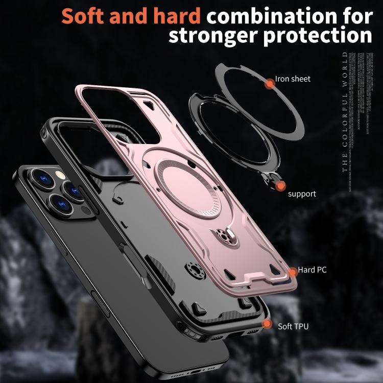 Funda Híbrida TPU con Soporte Magsafe para iPhone 16 Pro (Oro Rosa)