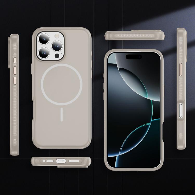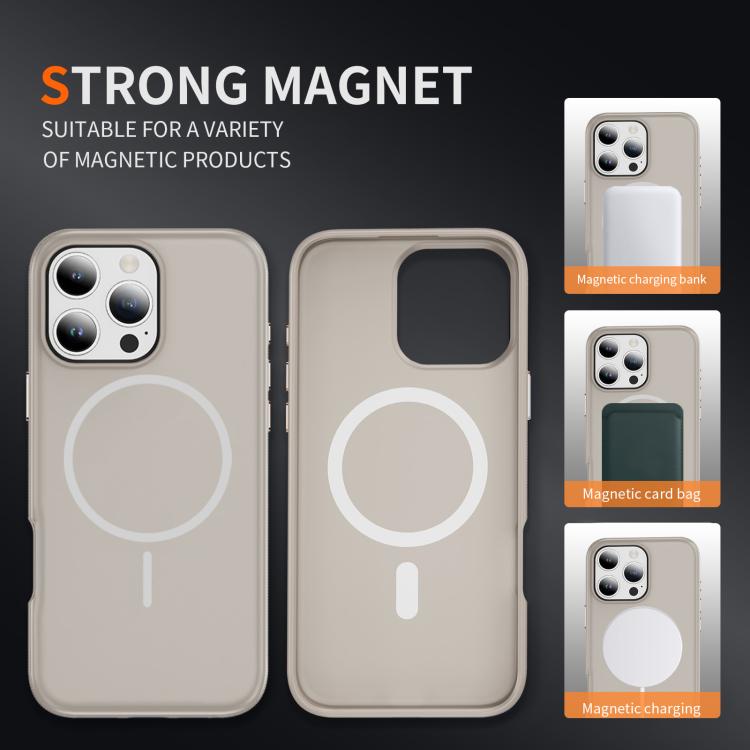 Funda híbrida de TPU Magsafe original para iPhone 16 Pro (beige y gris)