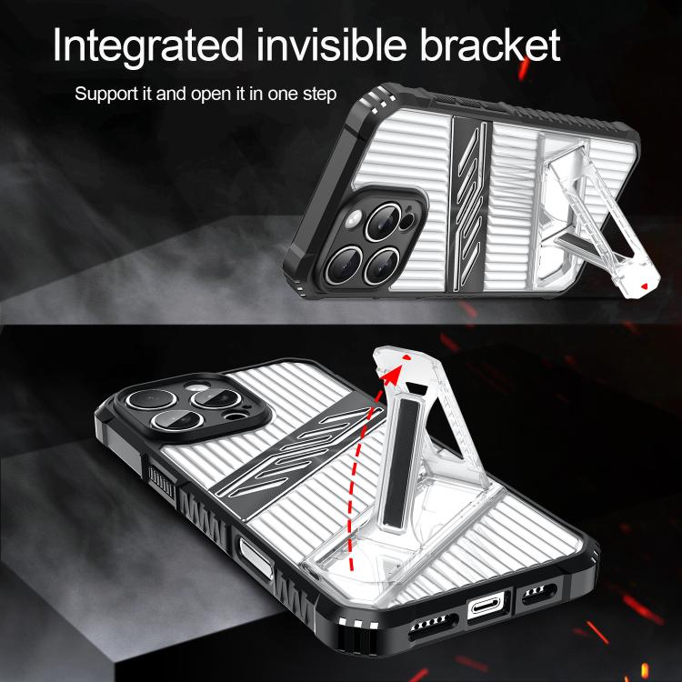 Funda híbrida TPU iPhone 15 Pro soporte PC (Gris Espacial)