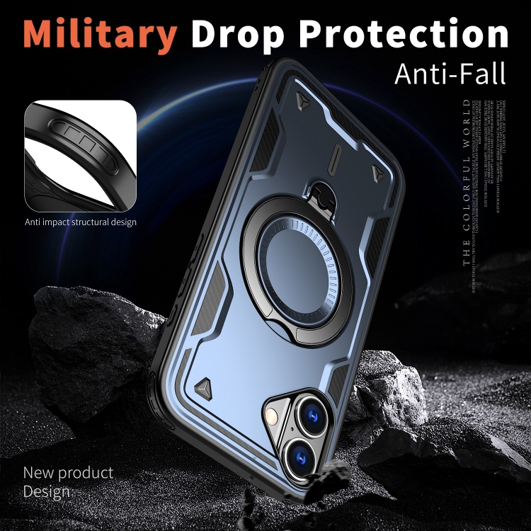 Funda híbrida TPU para iPhone 16 Plus con soporte Magsafe (Azul)