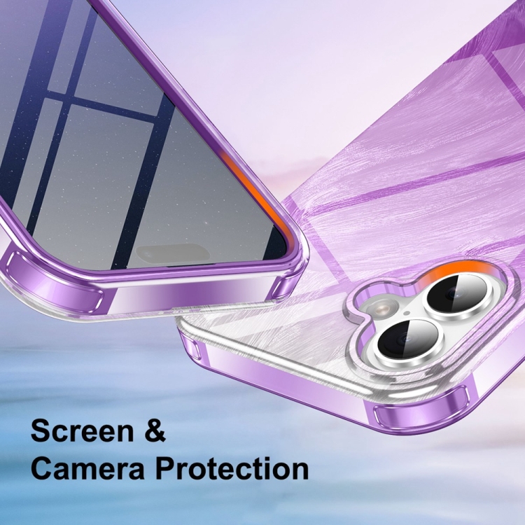 Funda híbrida TPU para PC iPhone 16 Plus diseño plumas degradado Imd (Morado)