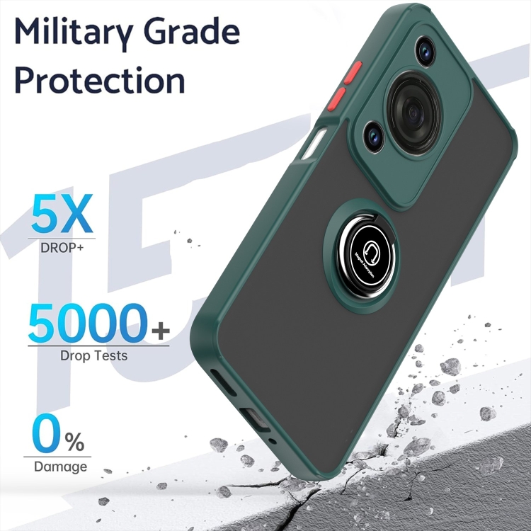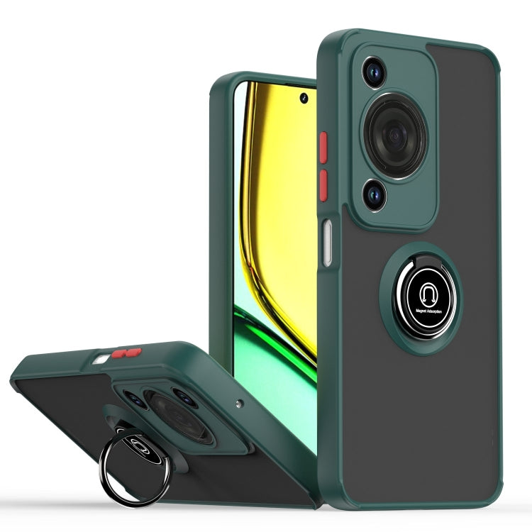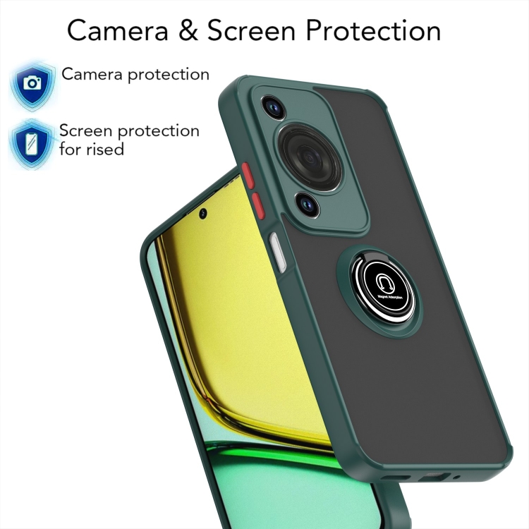 Funda Híbrida TPU y PC con Anillo para Huawei Enjoy 70 Nova Y72 Q Shadow 1 Series (Verde Oscuro)