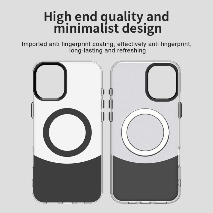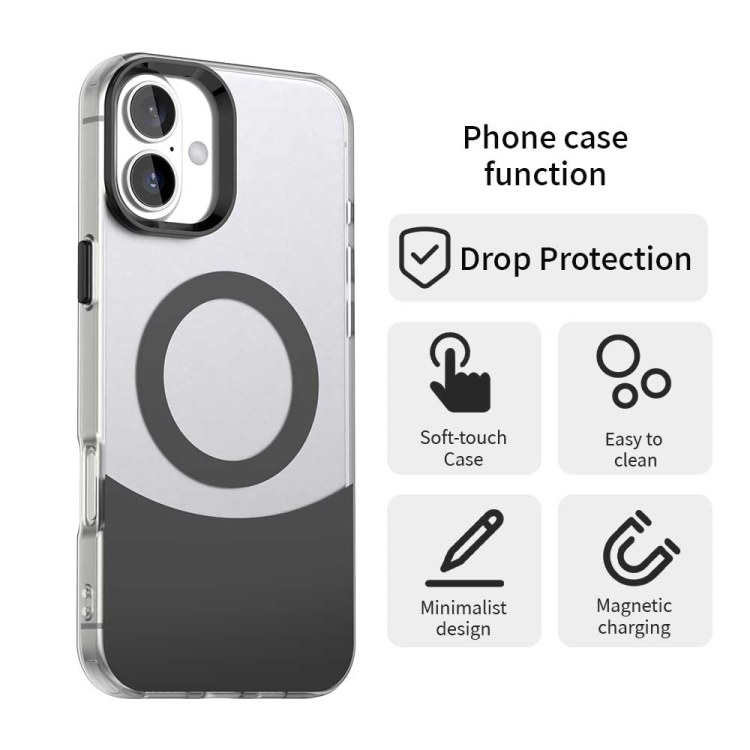 Funda híbrida TPU y PC bloqueo de color para iPhone 16 con imán Magsafe (Negro)