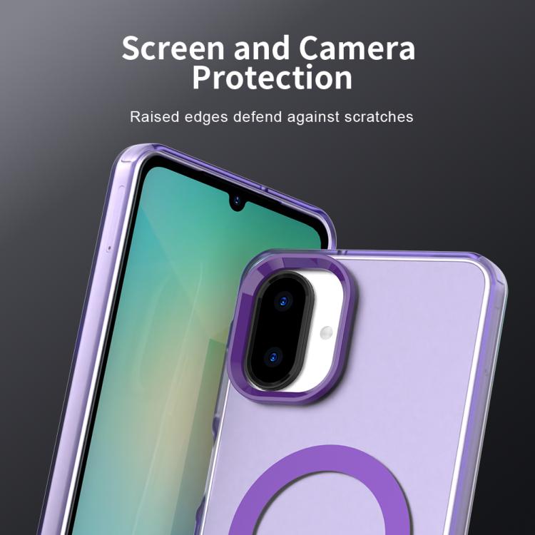 Funda híbrida de TPU y PC con diseño de caramelo Magsafe para Samsung Galaxy A07 4G (morado)
