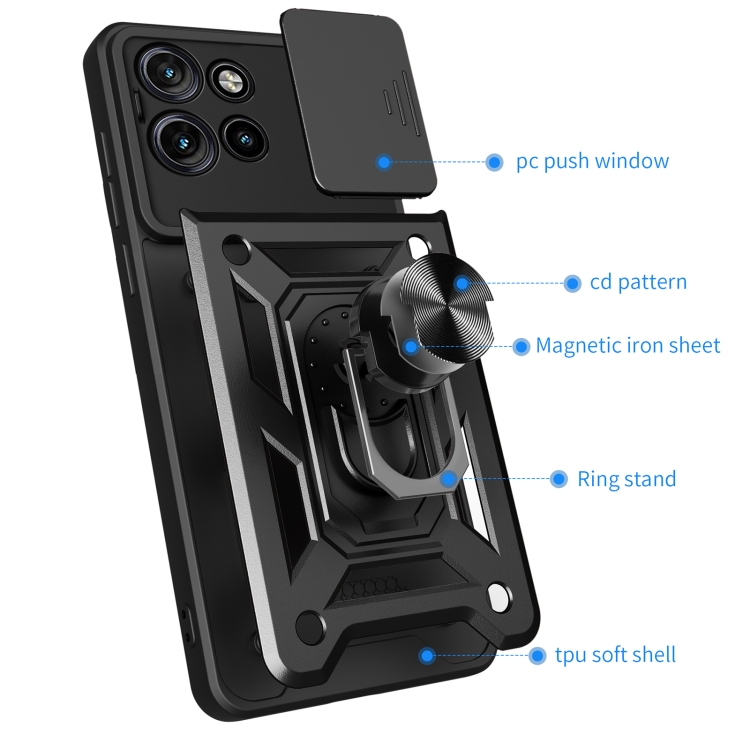 Funda Híbrida TPU y PC con Cubierta Deslizante para Cámara Motorola Edge 50 Neo (Plateada)