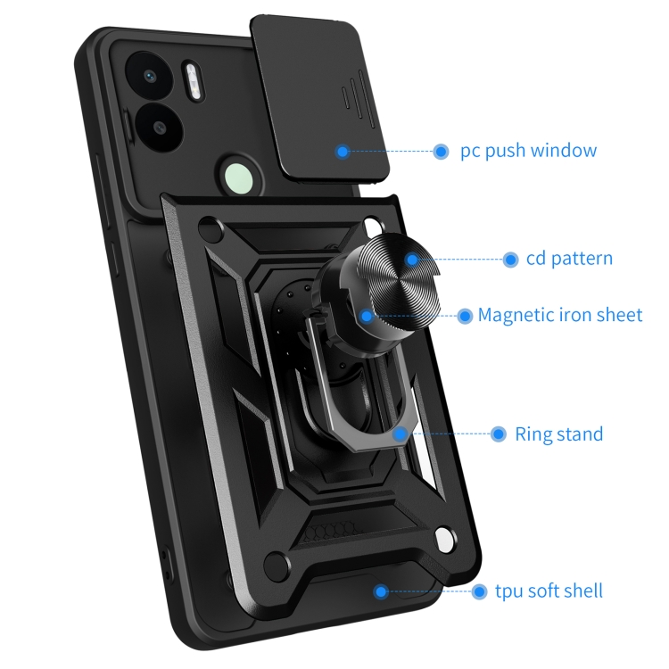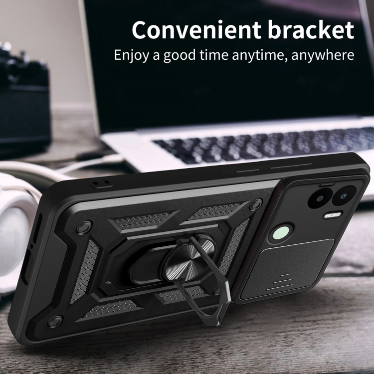 Funda Híbrida de TPU y PC con Diseño de Cubierta Deslizante para Cámara Xiaomi Redmi A1+ (Roja)