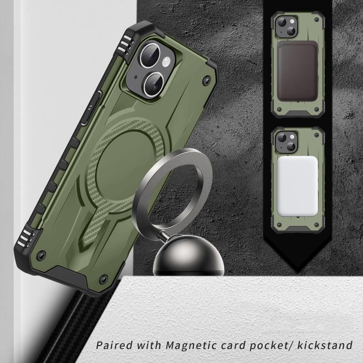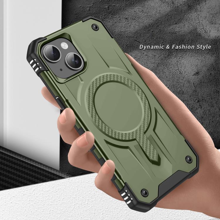 Funda híbrida TPU y PC Straship Magsafe para iPhone 14 y 13 (Verde Militar)