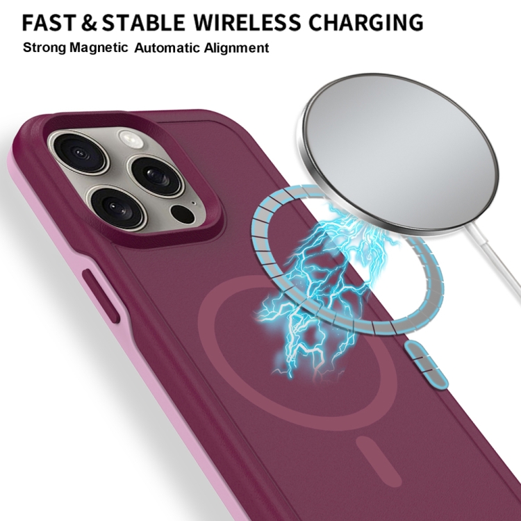 Funda híbrida TPU y PC con Protección Magsafe para iPhone 12 Pro (Rojo Vino y Rosa Claro)