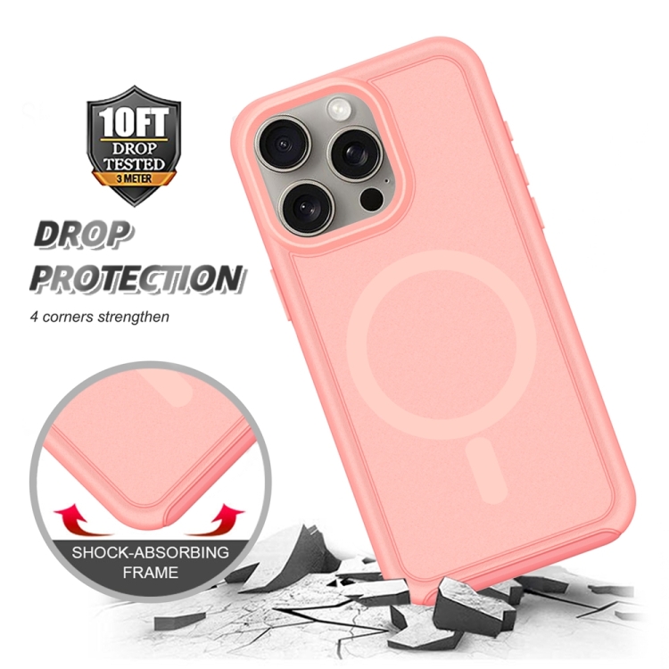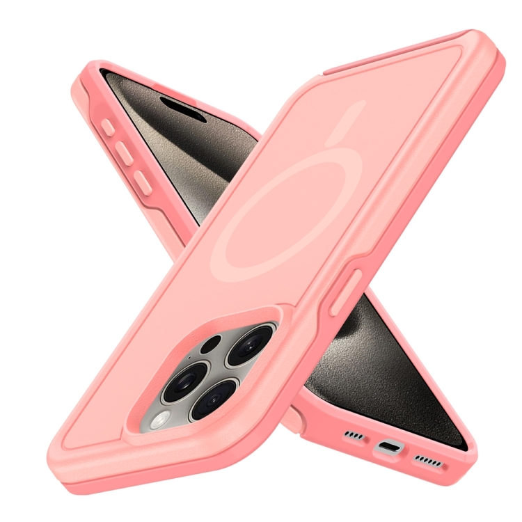 Funda Híbrida TPU y PC para iPhone 15 Pro con Protección Magsafe a Prueba de Golpes (Rosa Claro y Rojo Coral)