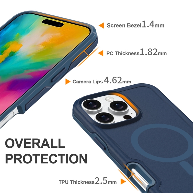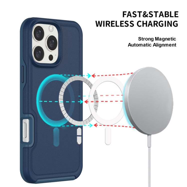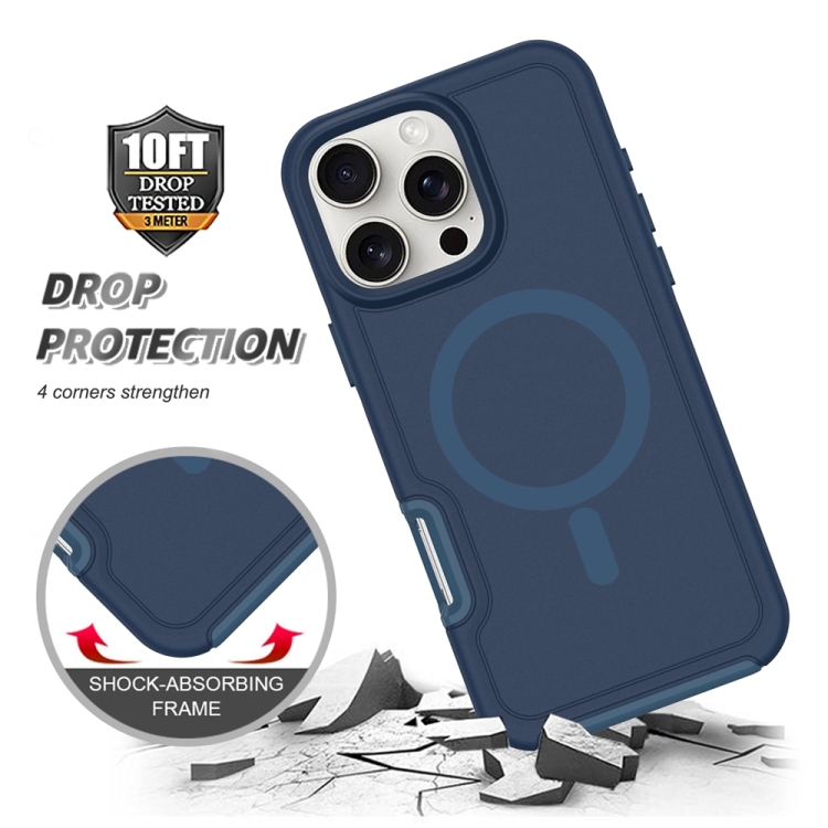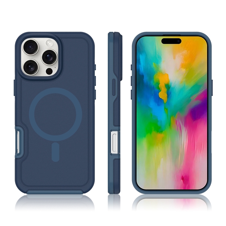 Funda híbrida TPU y PC para iPhone 16 con protección Magsafe a prueba de golpes (Azul Tinta)