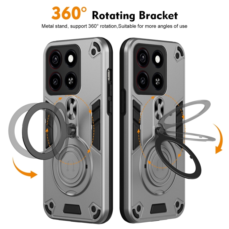 Funda Híbrida TPU PC con Soporte Giratorio 360° y Anillo Metal para ZTE Blade A35 (Gris Plateado)