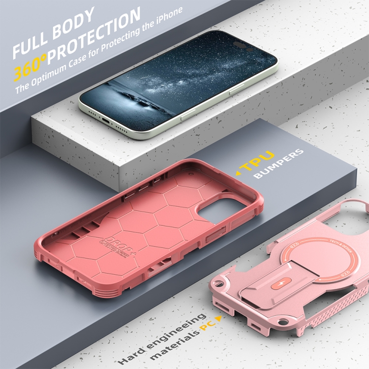 Funda híbrida TPU y PC con soporte Magsafe para iPhone 16 Plus (Rosa)