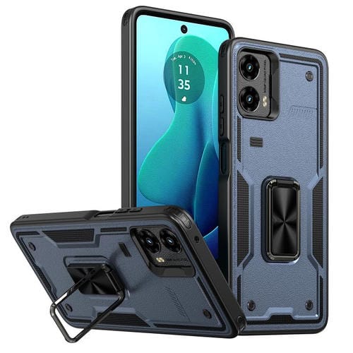 Funda híbrida TPU y PC con soporte para anillo Motorola Moto G 5G 2024 (Azul Marino)