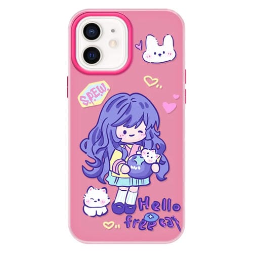 Funda híbrida TPU y PC iPhone 11 Tacto Sedoso (Chica de Pelo Morado, Rosa y Rojo)
