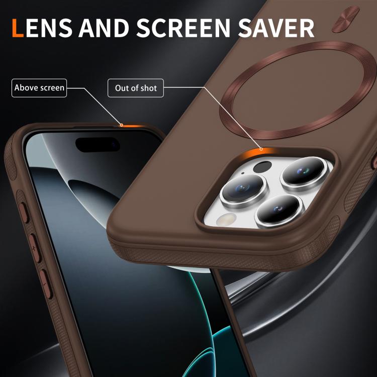 Funda híbrida de TPU y PC Magsafe con textura de CD original para iPhone 16 Pro (café)