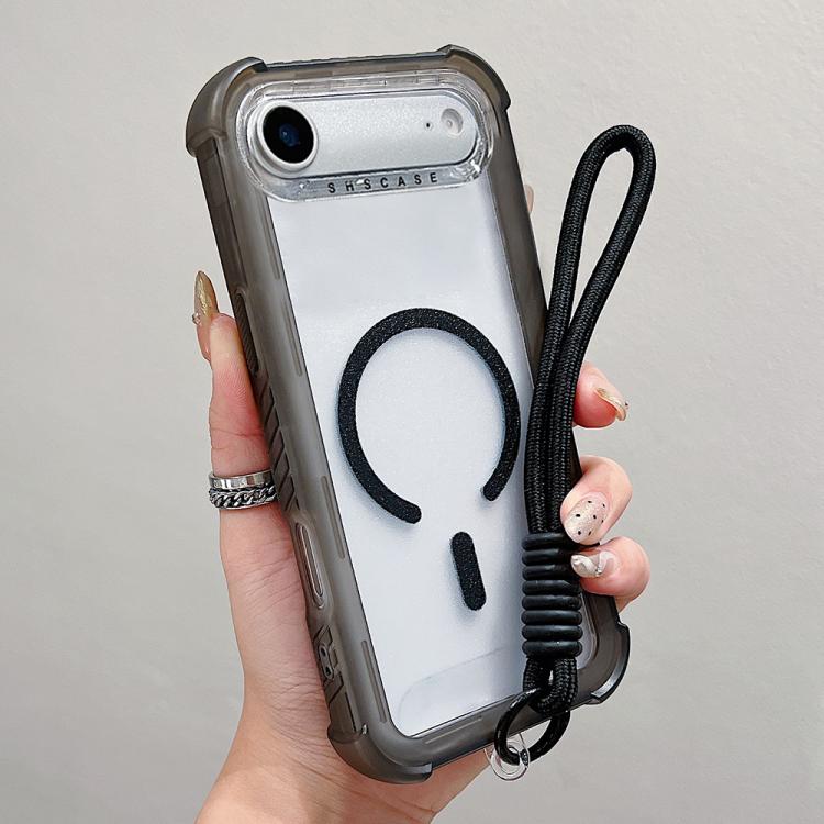 Funda híbrida de TPU y PC transparente mate 3 en 1 MagSafe para iPhone Air con correa de muñeca (negra)