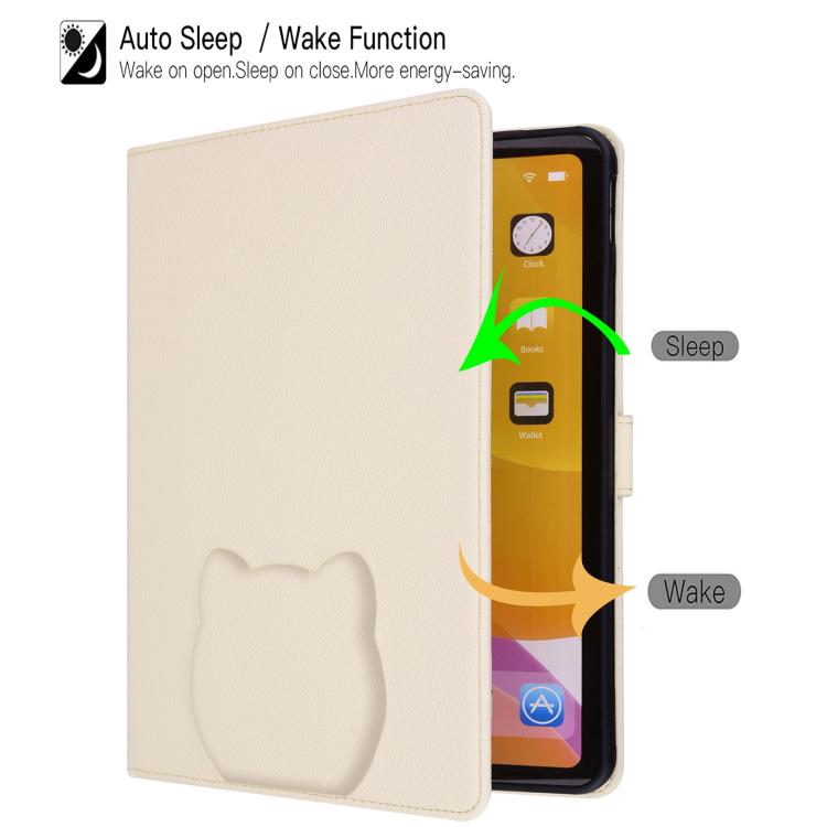Funda inteligente de piel de lichi con tacto de gato para iPad 2025/2022 (blanco albaricoque)