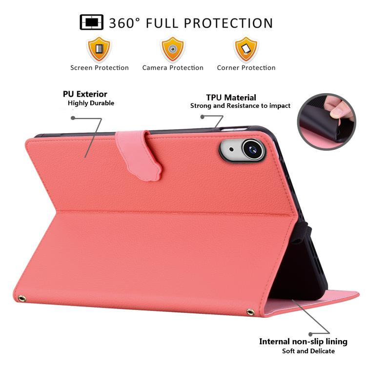 Funda inteligente de piel de lichi con tacto de gato para iPad 2025/2022 (rojo sandía)