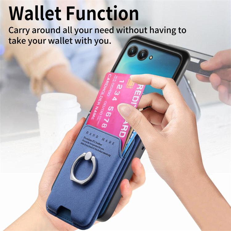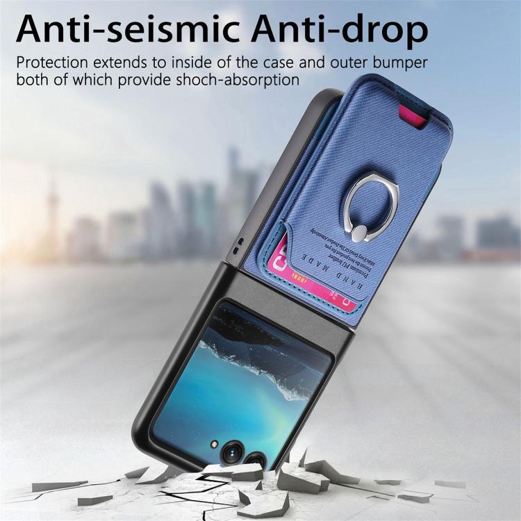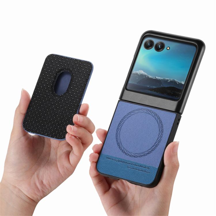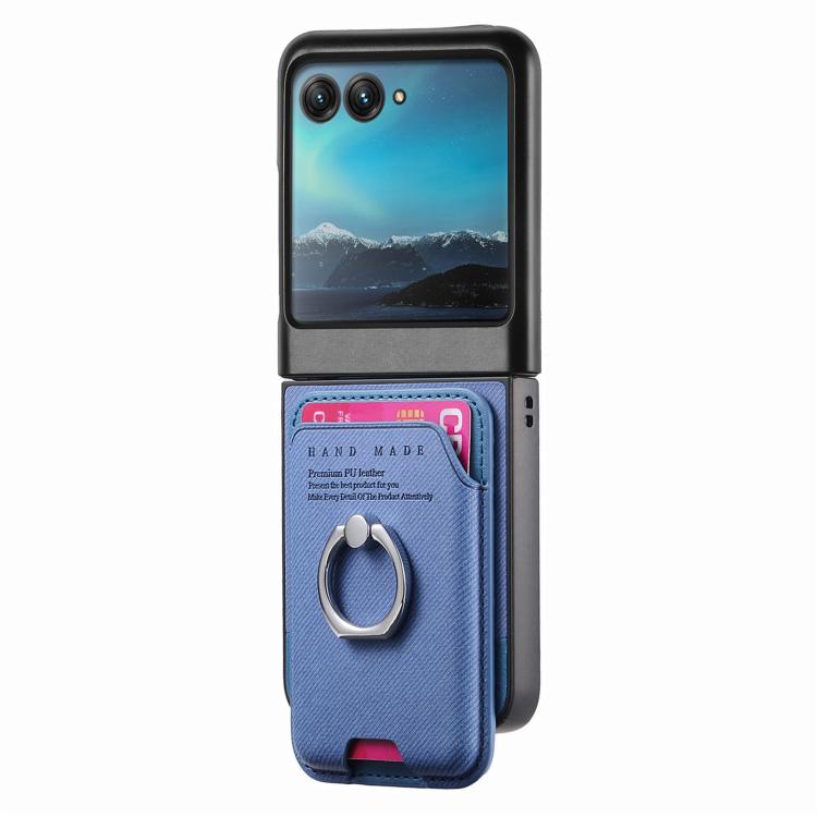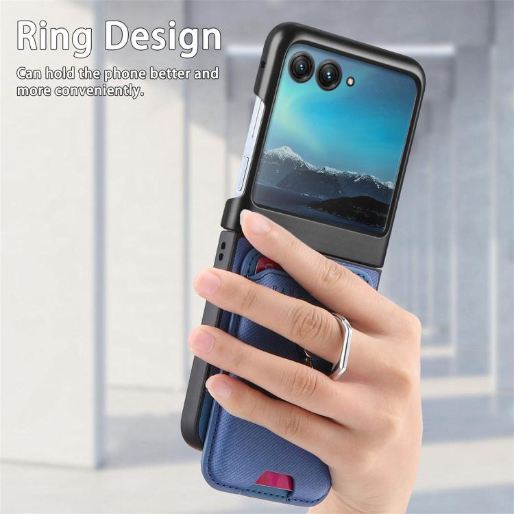 Funda magnética con anillo para Motorola Moto Razr 40 Ultra, de tela sarga, con ranuras para tarjetas (azul)