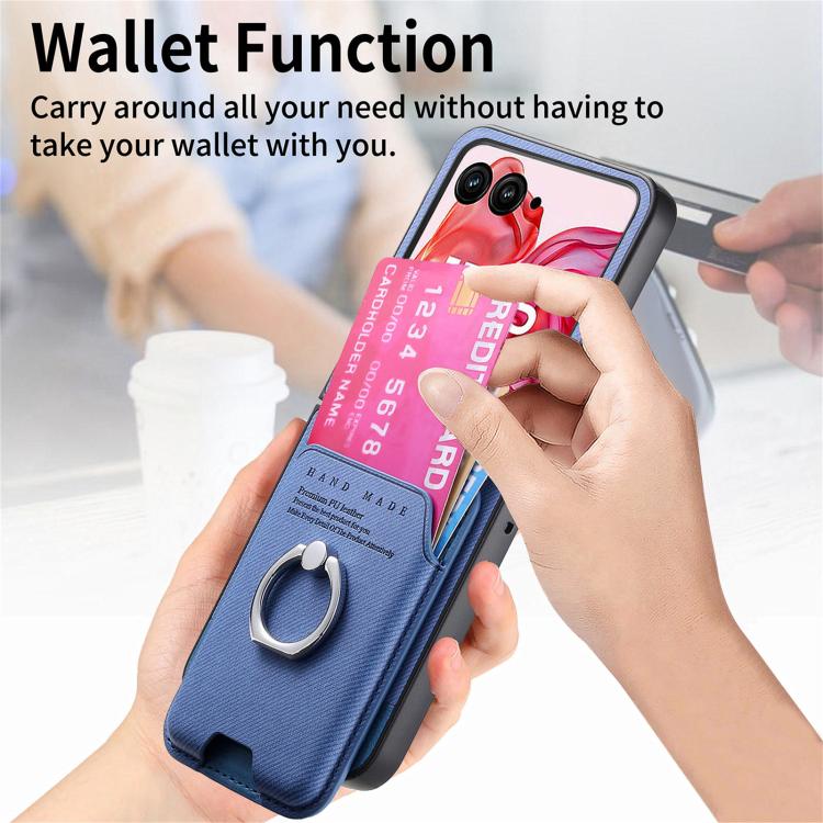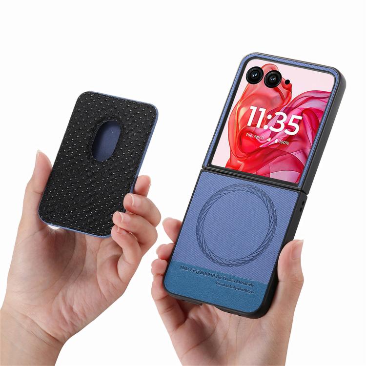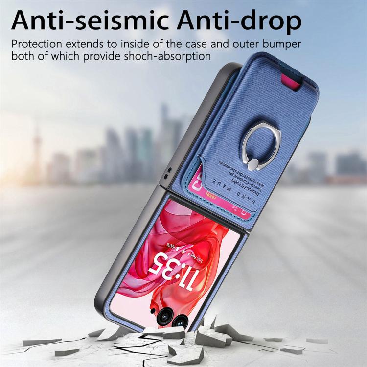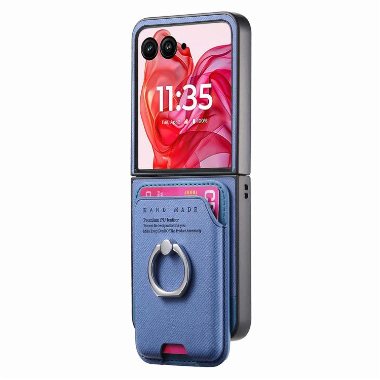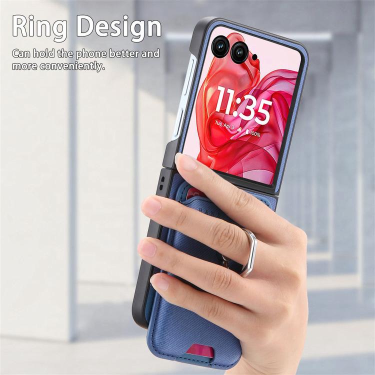 Funda magnética con anillo para Motorola Moto Razr 50 Ultra, de tela sarga, con ranuras para tarjetas (azul)