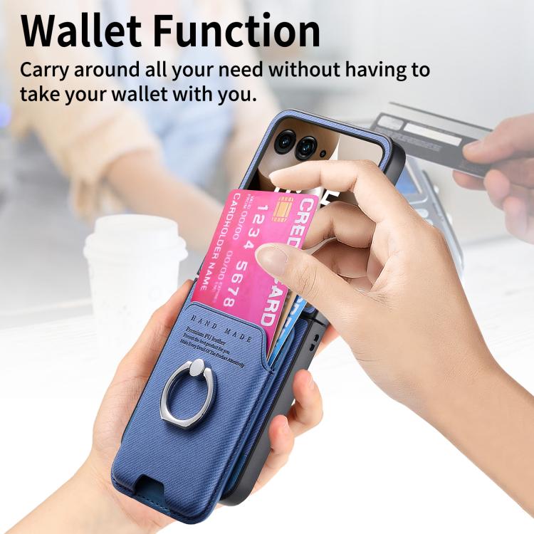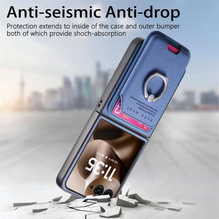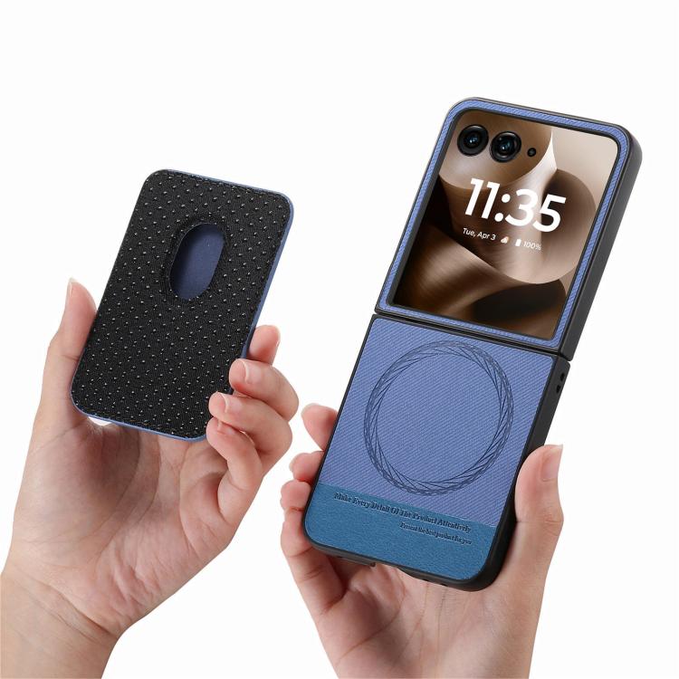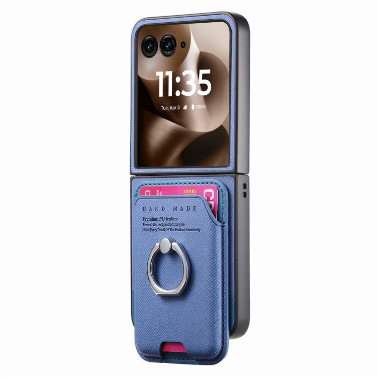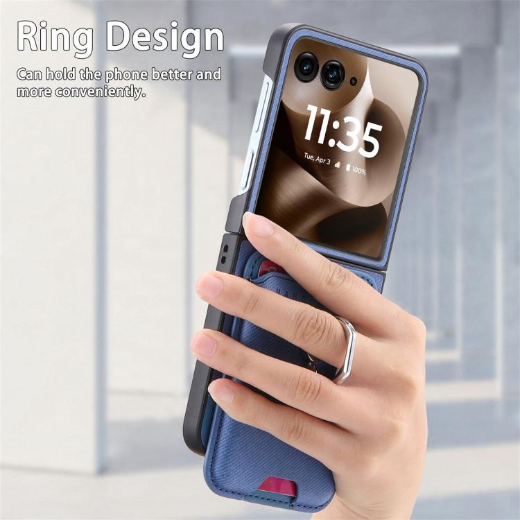 Funda magnética con anillo para Motorola Moto Razr 60 Ultra, de tela sarga, con ranuras para tarjetas (azul)