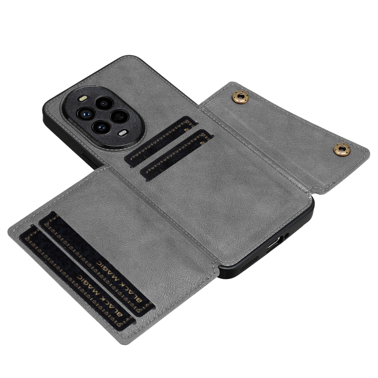 Funda Magnética Huawei Nova 13 Pro con Ranuras para Tarjetas y Doble Hebilla (Gris)