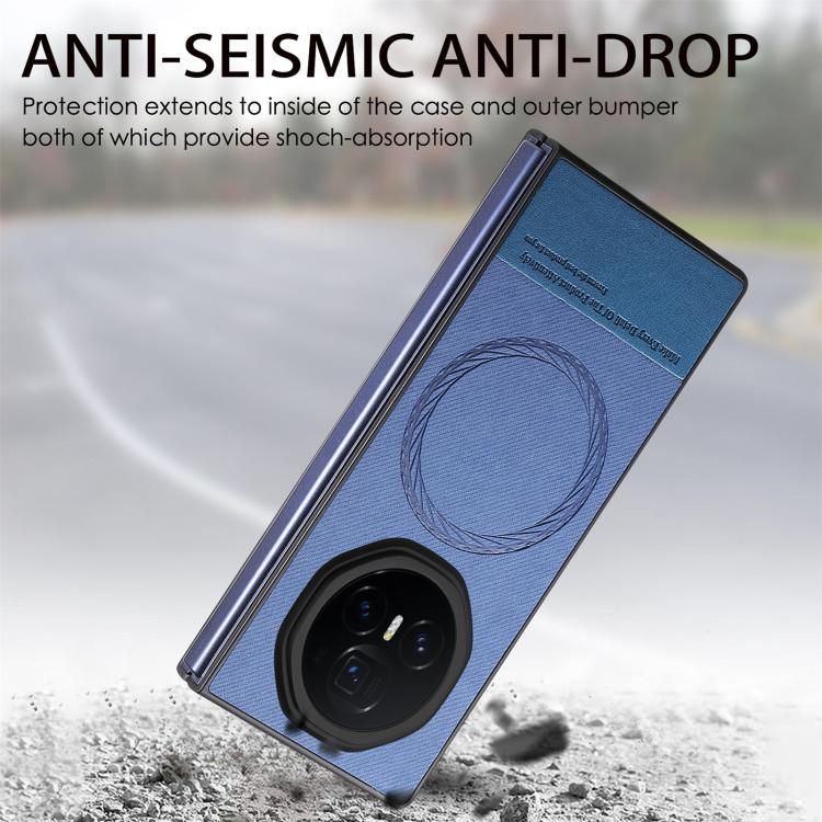 Funda Magnética de Piel y Sarga para Honor Magic V3 (Azul)