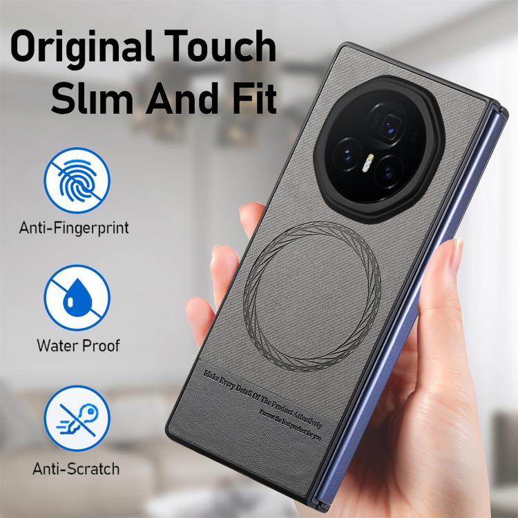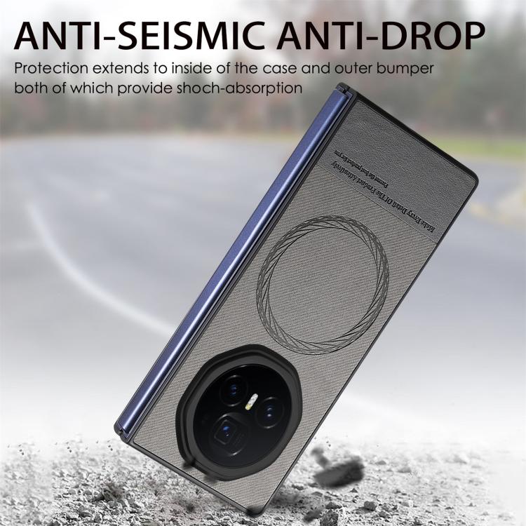 Funda Magnética para Honor Magic V3 con Parte Trasera de Piel y Tela de Sarga (Gris)