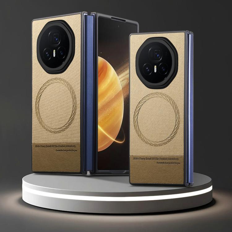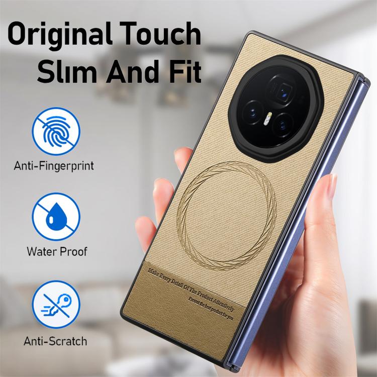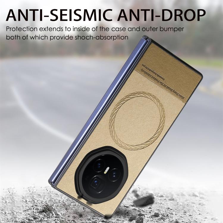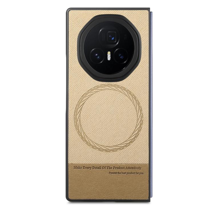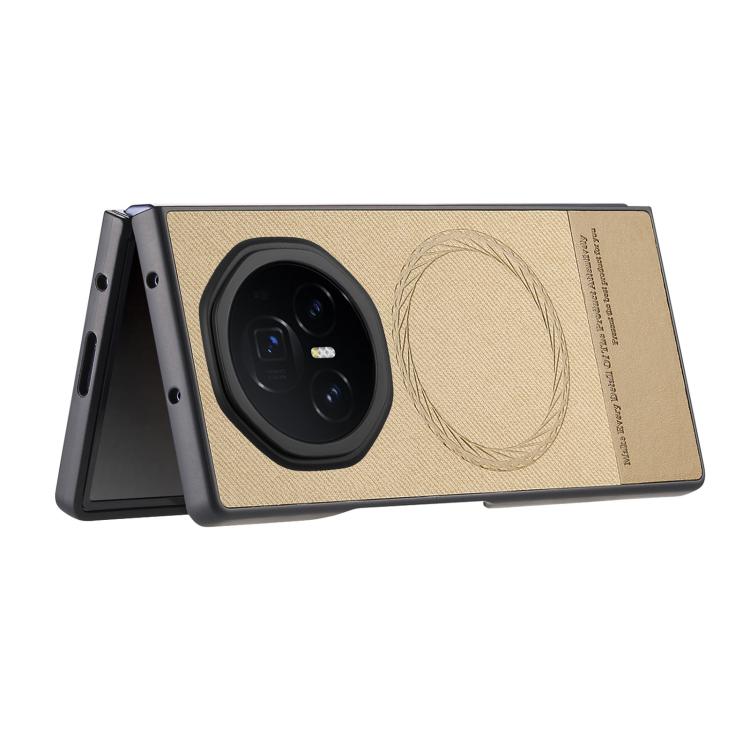 Funda Magnética para Honor Magic V3 con Parte Trasera de Piel y Tela Sarga (Caqui)