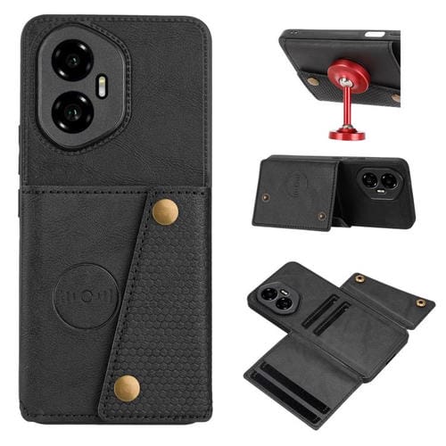 Funda Magnética para Honor 300 con Ranuras para Tarjetas y Doble Hebilla (Negra)