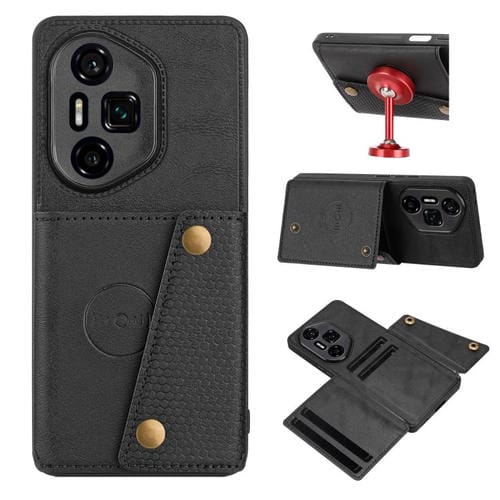 Funda Magnética para Honor 300 Ultra con Ranuras para Tarjetas y Doble Hebilla (Negra)