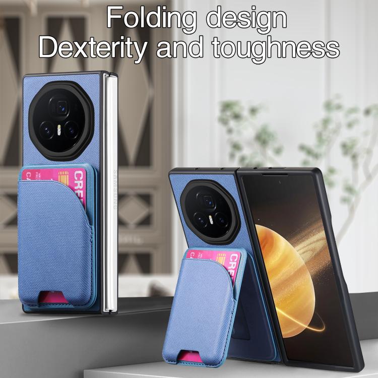Funda Magnética para Honor Magic V3 con Tapa Trasera de Cuero y Sarga (Azul)